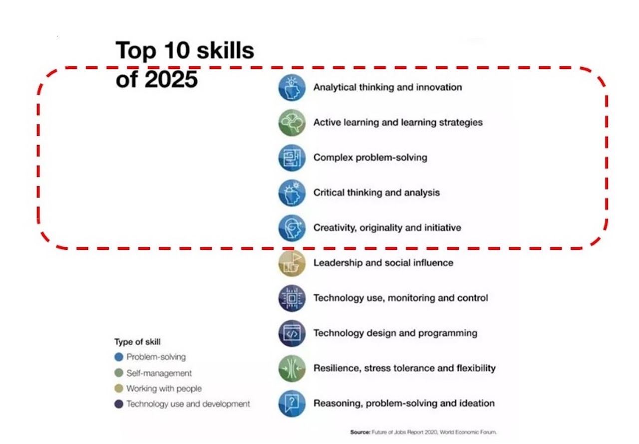 Da diversi anni creatività, problem solving innovativo e pensiero critico e laterale sono in cima alla lista.